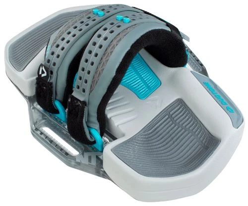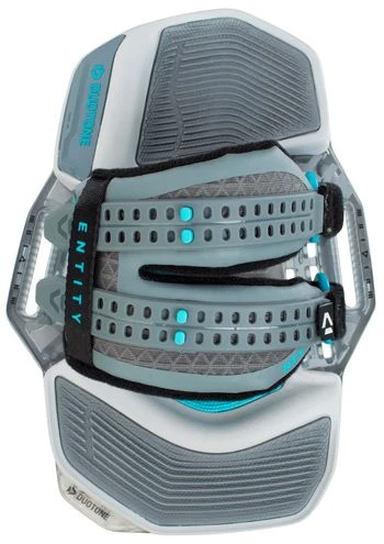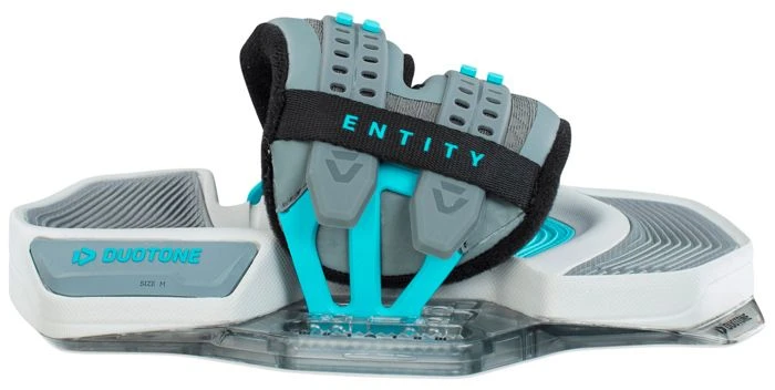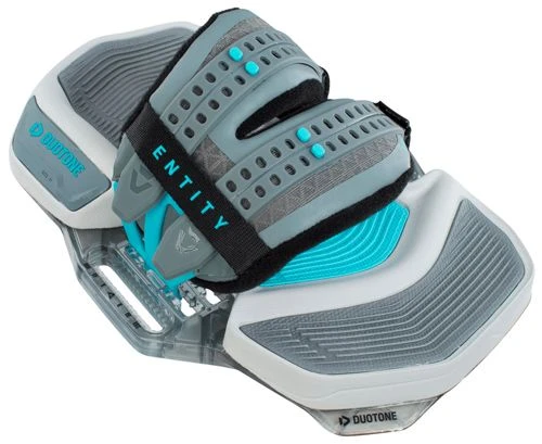 A one-fits all kite binding? It sounds unreal, but Duotone has succeeded in designing and producing one. The bindings, in combination with the correct adjustment of the straps, fully adapt to the position and shape of your feet, so that comfort is paramount. Compared to other bindings, the Entity offers a lot of grip, made possible by the EVA footbed and the toe padding. The ergonomic NTT foot pads in combination with the adjustable heel pads help to reduce the pressure on your heel and absorb many shocks that come to the body. This relieves long-term feet, back and knee pain. An extra nice little feature is the possibility to stick the screws of the pad to the bottom of the pad, so you don’t lose them while travelling!