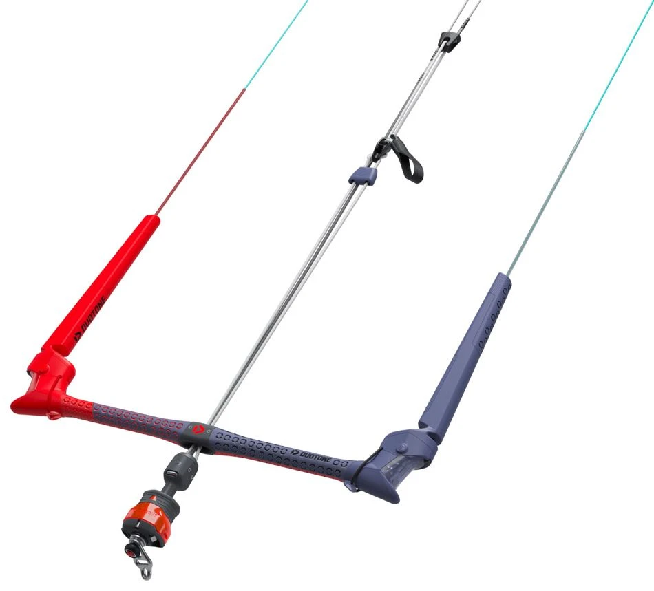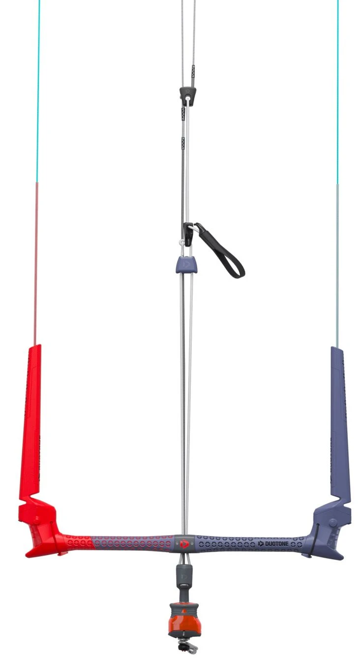 After a long time there is finally a really new Duotone Trustbar on the market with significant improvements. The most important difference with the previous Duotone kitebar is the possibility that it can be used on all kite brands. This option is made possible by the sliding distributor and the interchangeable pigtails. Another major change is the new click-in safety system, which makes it easier to assemble your Ironheart after pulling the safety. This is the only bar you will ever need, as the bar width and line lengths can easily be adjusted to suit your kite. The bar is adjustable between 42 and 49cm with 22m lines with 2m extensions. The 12m+12m is ideal for kite schools so they can teach with shorter lines.
