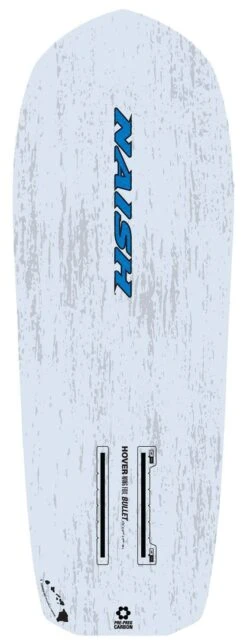 The two-stage rocker increases your performance, you can reach high speeds with a powered up wing and the smallest possible foil. The large bevel provides more rail clearance so you can better sail upwind and maintain high speed. The wingsurfer has more control due to the flat top of the board. The Naish Hover Bullet is the latest and greatest in wing foil racing.