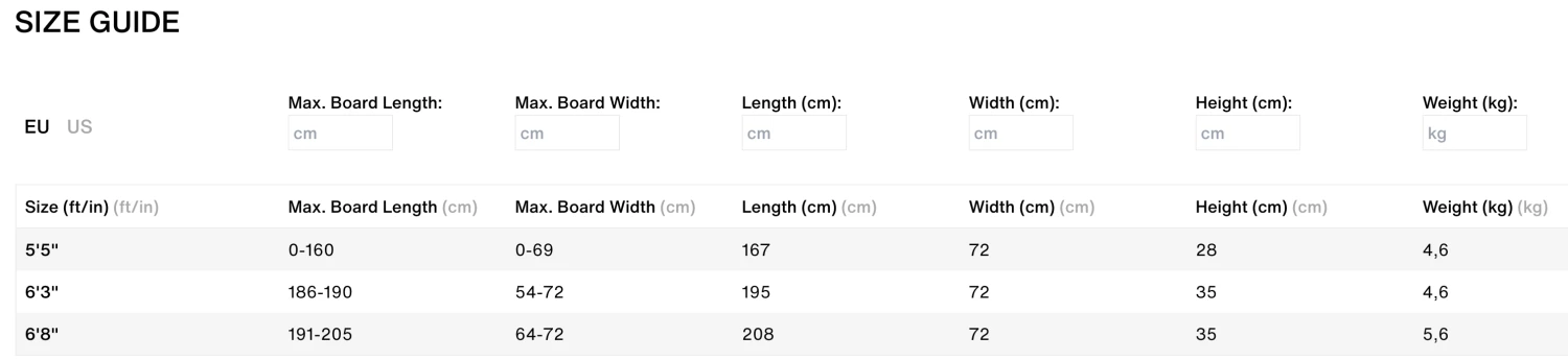 - Max. boardsize 160/69cm